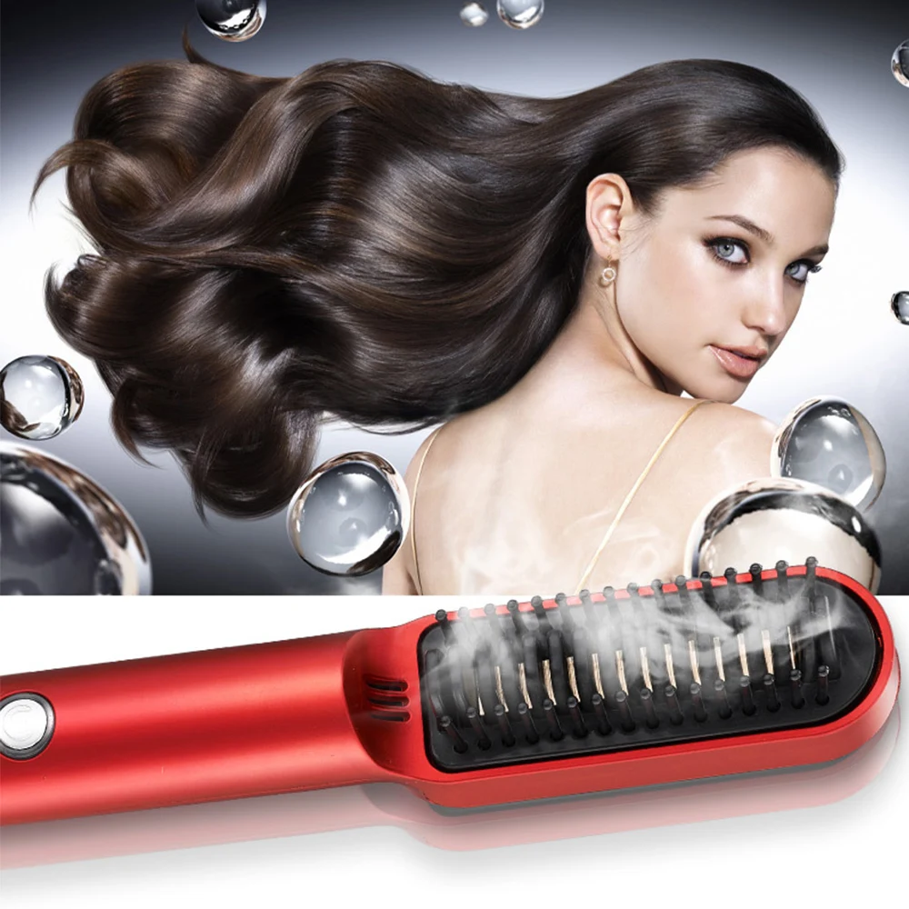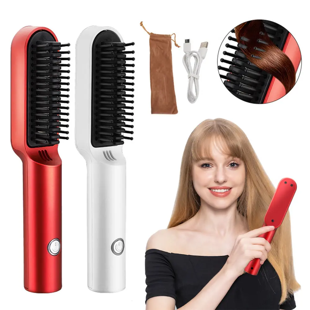 Wireless Hair Straightener Brush Electric Hair Brushes Hot Comb Straightener For Hair Beard Flat Iron Ceramic Heating Hair Curler