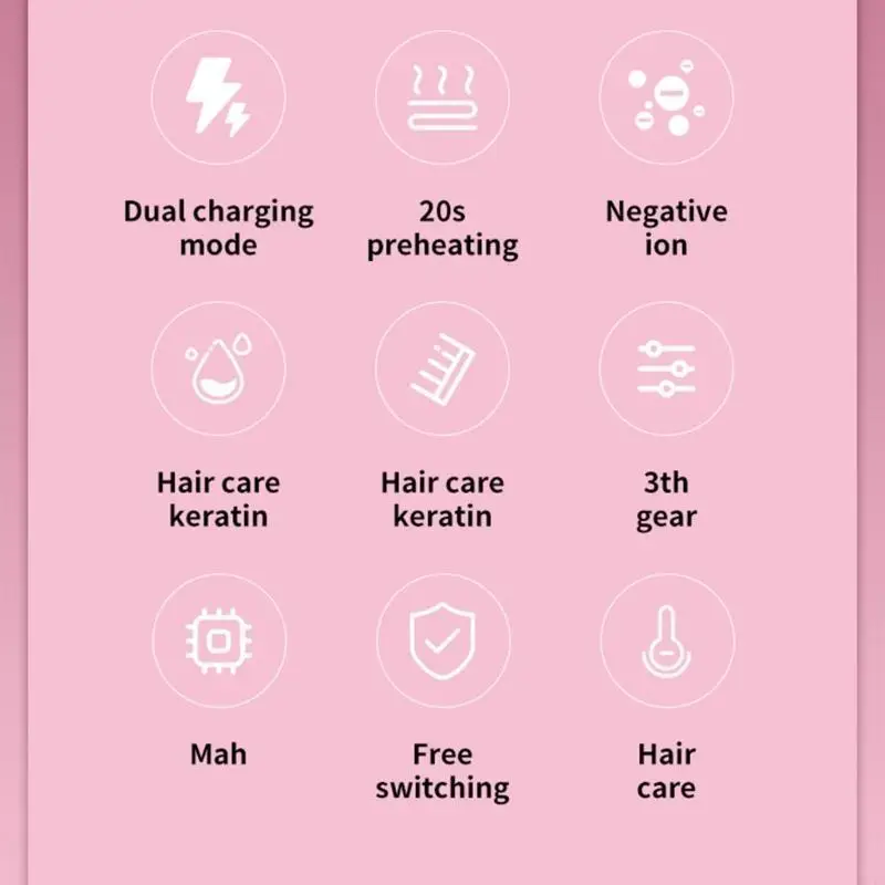 Min. Temperature:160 °C Max. Temperature:200 °C Thermostat Adjustment Segments:3 Voltage:100-240v (Dual voltage) Power Source:Electric Power:35w Voltage:110-240V Application:Car,Outdoor,Hotel,Household Material:ABS Color:Black,Pink,White Size:20x4.5cm ..