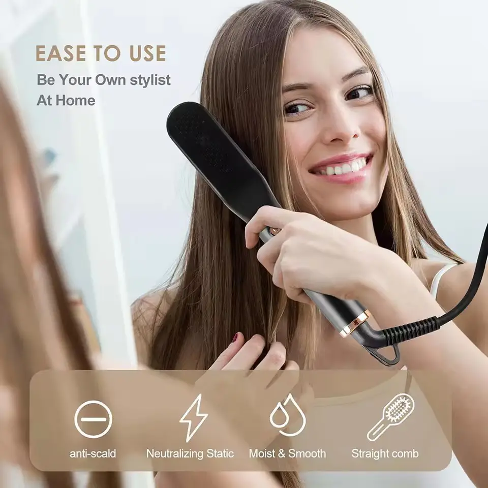Ceramic Hair Straightener Fast Heating Brush Multifunctional Hair Curler Styler Straightening Hot Comb Styling Tools