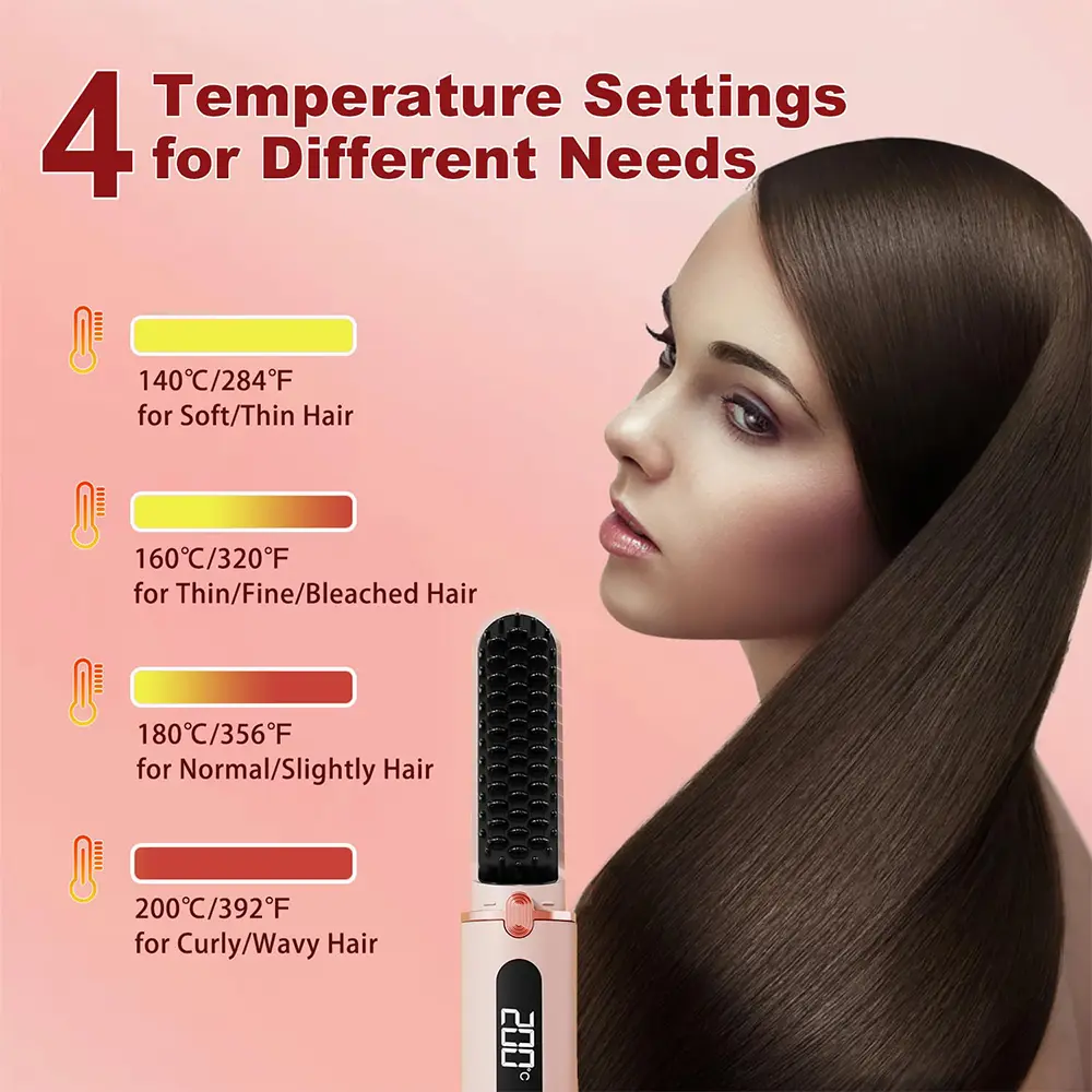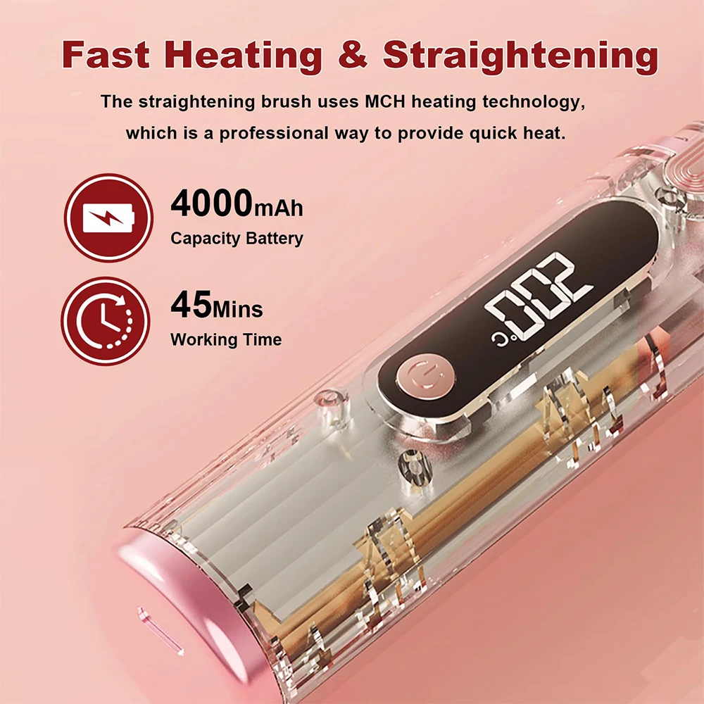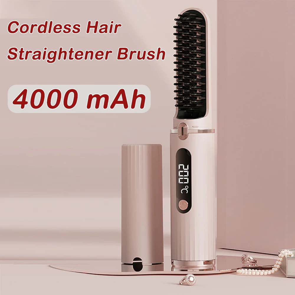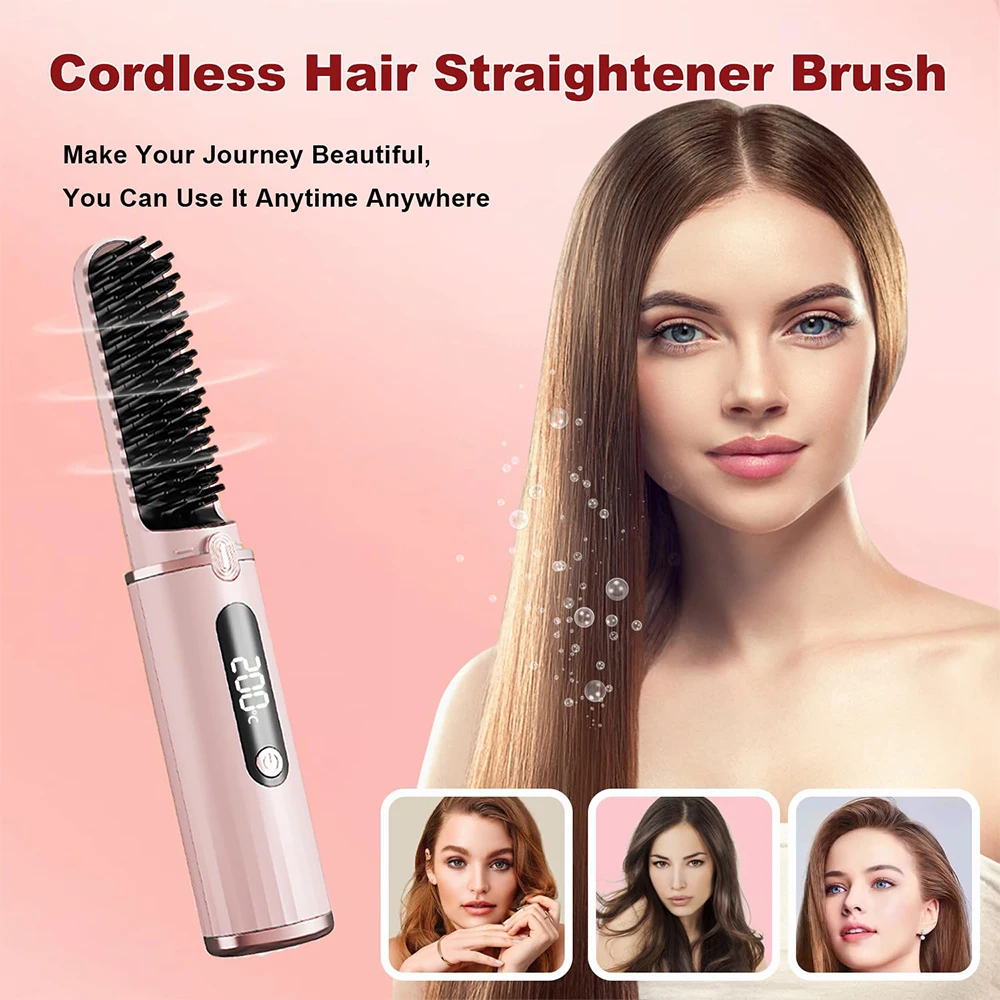 Cordless Hair Straightener Brush for Women Electric Hair Brushes Comb With Negative Ions Portable Hair Straightener for Travel